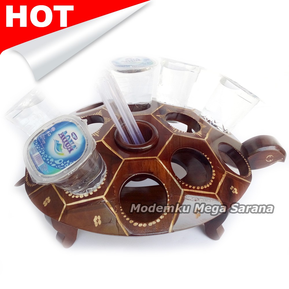 Tempat / Tatakan air mineral gelas dari kayu 12 lubang - Kura kura. Tempat air mineral gelas dari kayu untuk Tatakan air mineral gelas. Buatan pengrajin Bantul Yogyakarta. Meja tamu Anda menjadi lebih cantik dengan sajian air mineral ditempatkan pada Tatakan/Tempat air mineral ini.