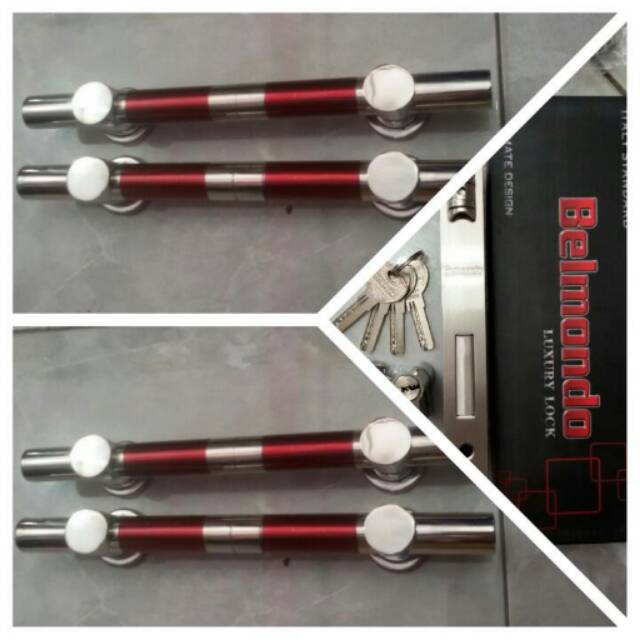 handle pintu stainless 33cm model bulat kombinasi merah elegant 2set(4gagang)+ body pelor comp key isi 4 anak kunci dgn kwalitas bagus dan awet. sudah dilengkapi sekrup pemasa