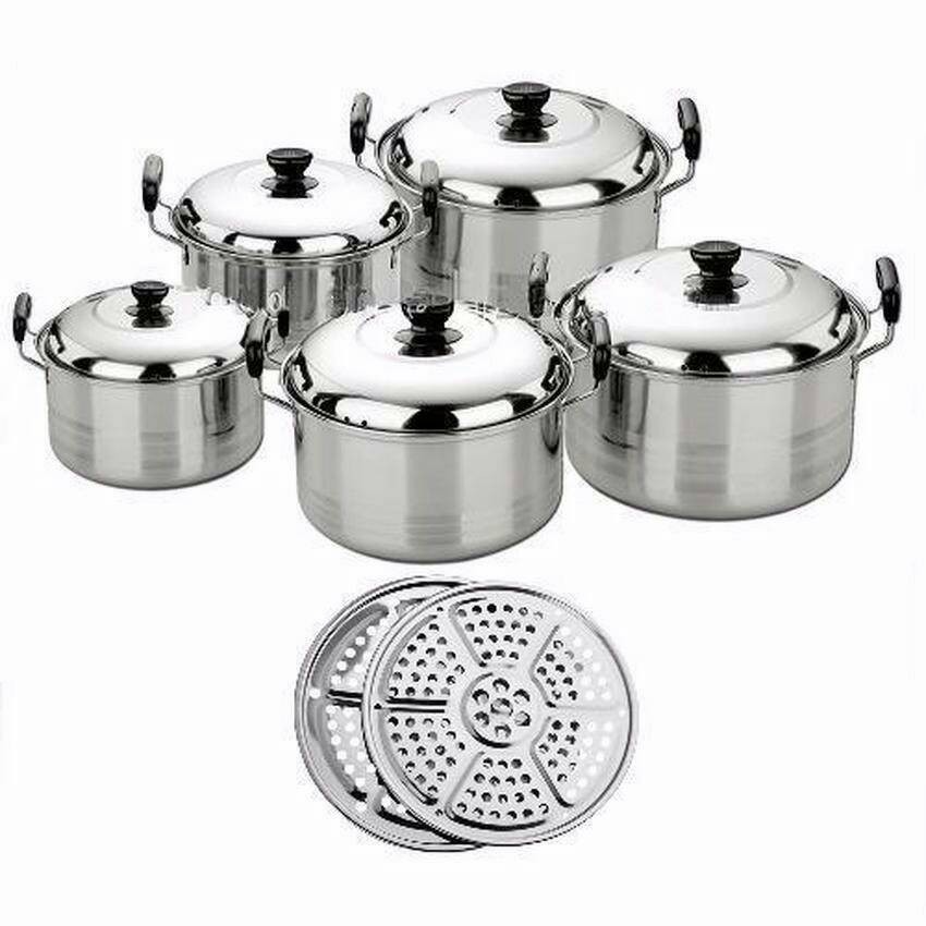 Sale Perlengkapan di Kota Pangkal Pinang Panci Kingko Set Isi 5 Pcs + 2 Steamer Kukus Kukusan Pengukus Stainless Steel dari Tidak Ada Merek Kab. Bogor