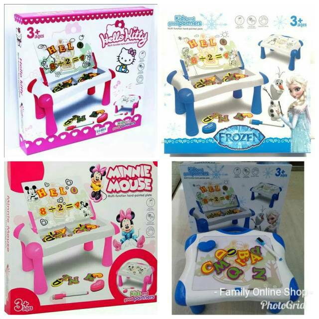 Magnetic Sketchpad merupakan Papan Tulis skaligus Meja Belajar Bermain edukasi dengan papan magnetic yang bisa ditulis menggunakan spidol, dan juga ditempel huruf bermagnet.
