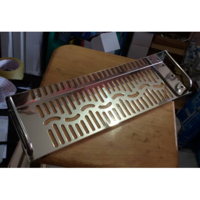 Rak sabun kotak stainless panjang 40cmx lebar 11,5cm. Tebal 1ml. Kwalitas lumayan tebal dan barang mulus. Sudah dilengkapi baut fiser dan penutup