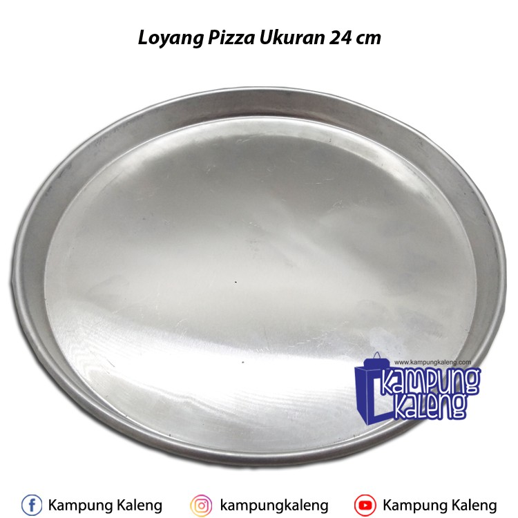 Loyang Pizza Mini Ukuran diameter atas 24 cm dan diameter bawah 22 cm, terbuat dari alumunium press. Pembelian minimal 6 pcs. Harga yang tertera untuk 6pcs.
