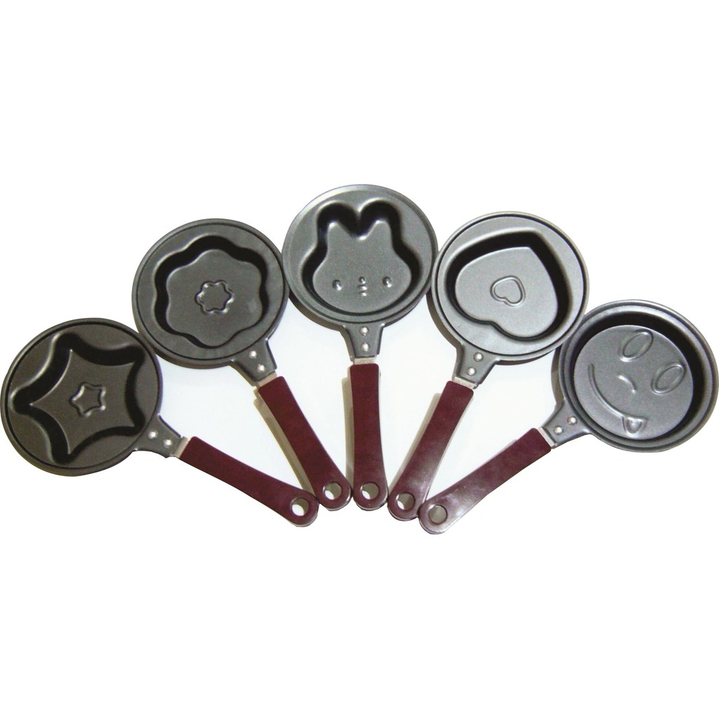 Wajan penggorengan untuk telur (khususnya), memudahkan bentuk telur yang berbeda, ceriakan hari-hari anggota keluarga anda dengan seyuman awal di pagi hari saat sarapan. Bisa juga untuk cetakan pancake. Anda mendapatkan sekaligus 5 pcs dengan motif yang berbeda. Anti lengket, hemat, efisien serta efektif, mudah dibersihkan dan higienis.