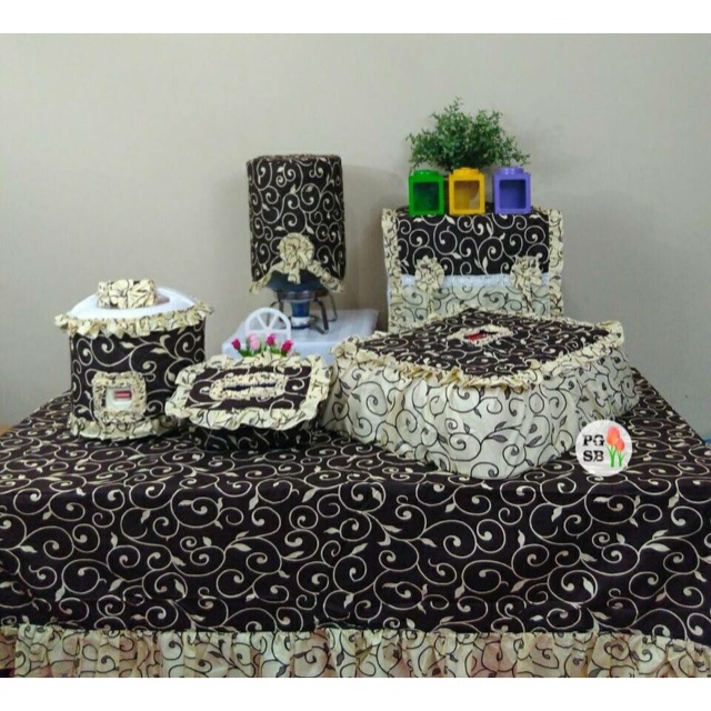 Cuci Gudang Perlengkapan di Kabupaten Kampar Kitchen Set Daun Rambat (taplak Meja, Tudung Saji, Tempat Tissue, Cover Kulkas, Galon, & Magic Com) dari Tidak Ada Merek Kab. Sleman