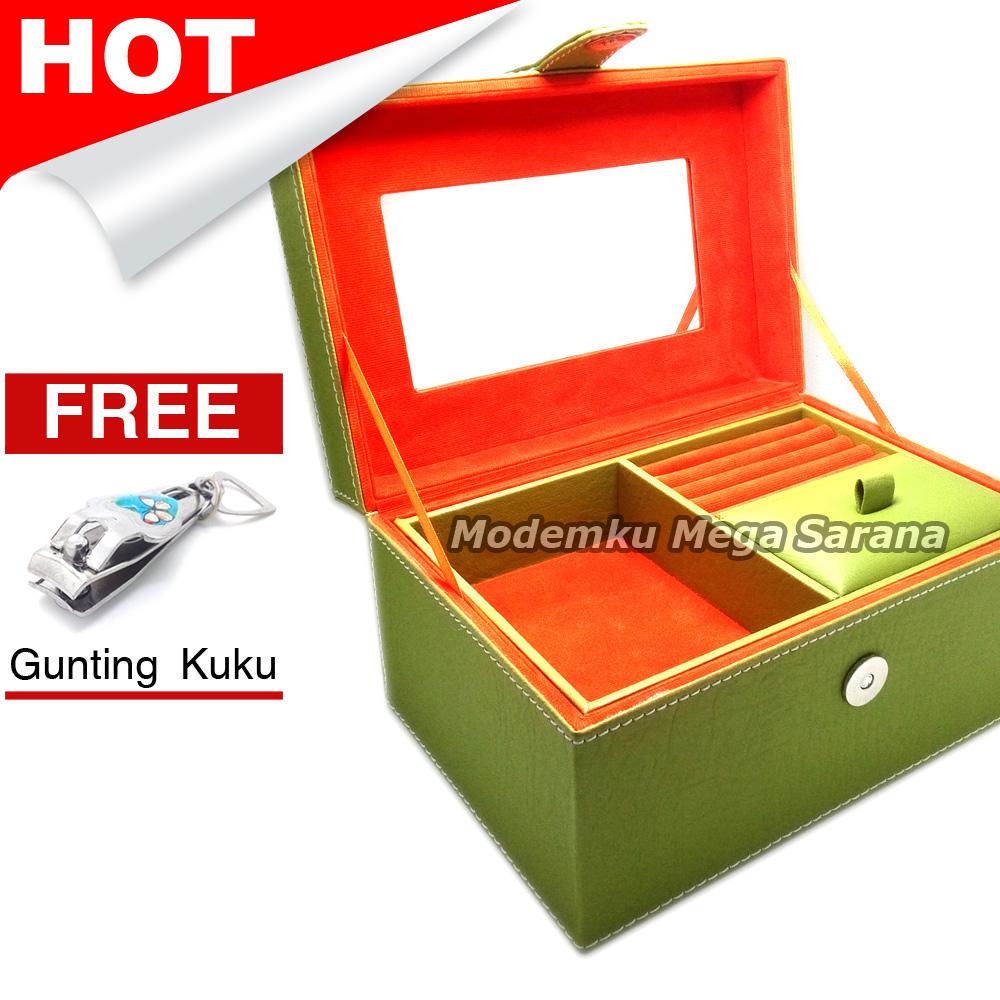 Kotak Box Perhiasan Kalung Gelang Cincin & Aksesoris 21x14x11 cm Vinyl - Hijau dlm Oranye + Gratis Gunting Kuku