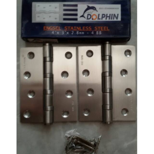 engsel pintu 4in dolphin stainless SUS304 anti karat. isi sepasang/2pcs. Tebal 3mm