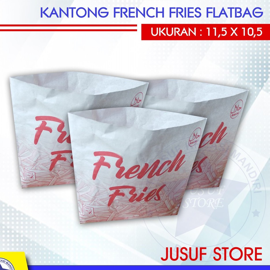 Harga Custom Kantong french fries, ukuran 11,5*10,5cm, bahan greaseproof 40gsm, finishing lipat flatbag+lem