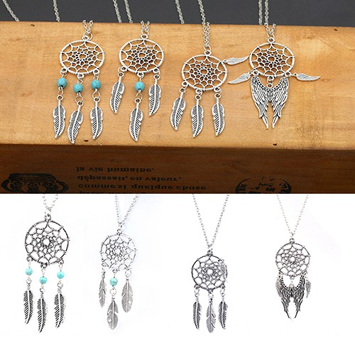 Paling Murah Perlengkapan di Kabupaten Batanghari Perhiasan Kalung Wanita: Model Vintage Dengan Rantai Berliontin Pirus Bentuk Dream Catcher Dan Bulu dari Bluelans Luar Negeri