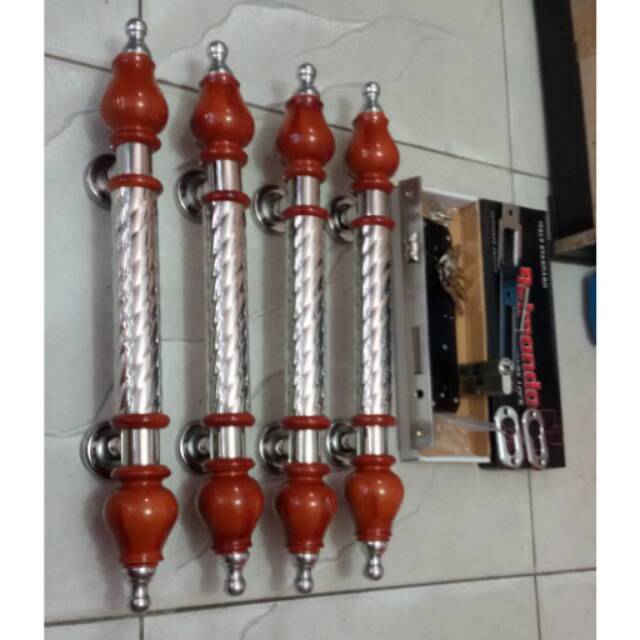 Handle pintu stainless 42cm 2set(4 gagang)+ body pelor belmondo comp key isi 4 anak ku